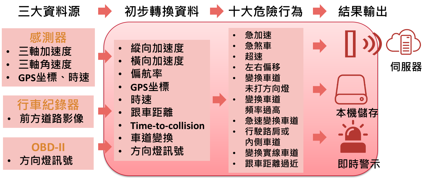 第三層:根據本團隊所設定危險行為公式將data轉換成危險行為,並且針對行為進行統計分析。